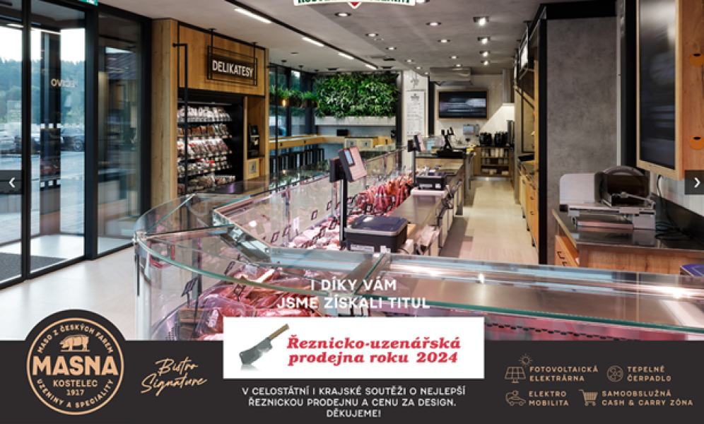S hrdostí oznamujeme, že naše podniková prodejna v Kostelci uspěla v soutěži a získala titul nejlepší Řeznicko-uzenářská prodejna roku 2024, Řeznicko-uzenářská prodejna kraje Vysočina pro rok 2024 v kategorii nezávislý trh a cenu za DESIGN pro rok 2024. Děkujeme všem zákazníkům a skvělému personálu, kteří se každý den podílejí na tomto úspěchu.